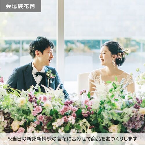スクエア型のBOXにお二人のコンセプトに合わせたお花ををギュッと詰め込みました。フタを開けた瞬間に香る花たちがお二人を最高の笑顔にしてくれるでしょう。ご注文期限:結婚式5日前までそれ以降のご注文をご希望される方は、祝電花担当窓口へご連絡をお願いします。